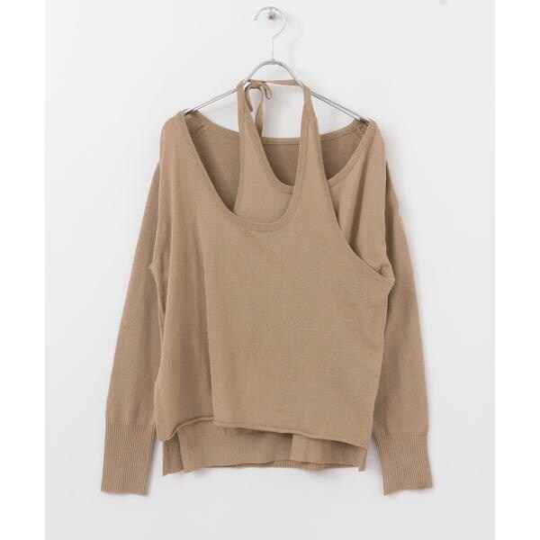 ホルターネックレイヤードニット