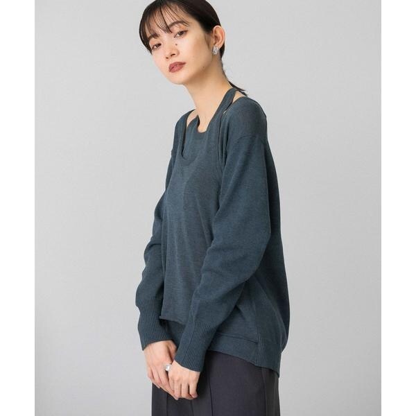 ホルターネックの襟元の抜け感が女性らしさを演出してくれるレイヤードニット。適度に肌が見える為、取り入れるだけで春の先取りコーデが完成します。ベーシックな色展開でデニムはもちろん、今年流行のカラーボトムとの相性も良いので、スタイリングがしやすいアイテムです。
