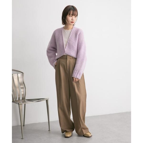 秋コーデに欠かせないカーディガンが早くも登場。柔らかい印象を放つ手編み風仕様&スタイルアップが期待できるショート丈がポイントです。少しMIX感のある糸を採用したのも特徴的。目を惹くカラーバリエーションとなっております。