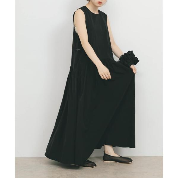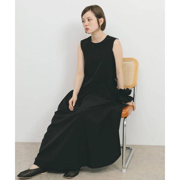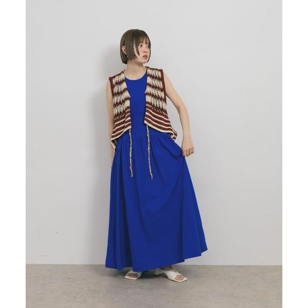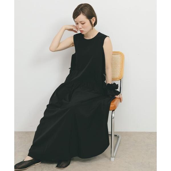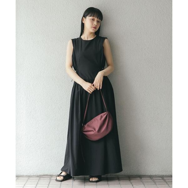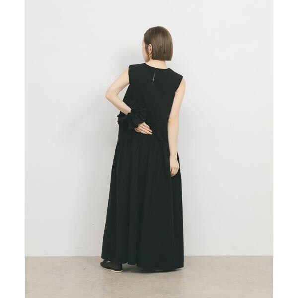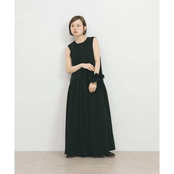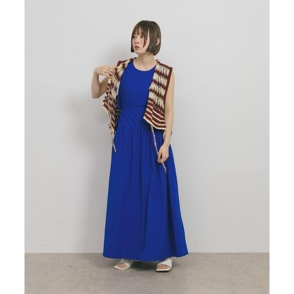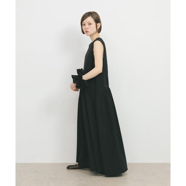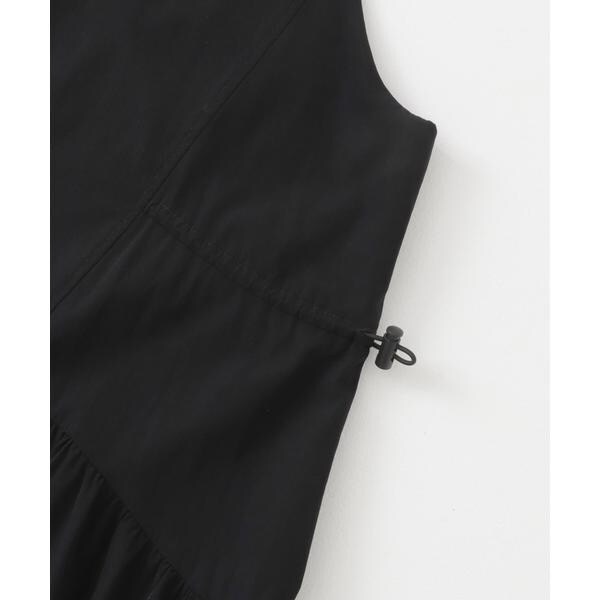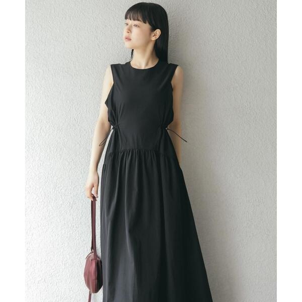 コーディネートに迷わない、1枚そのまま着るだけでお洒落に仕上がるワンピース。すっきりと華奢見えするようなノースリーブライン、ローウエストの切り替え位置や裾フレアシルエットのバランスにこだわりました。ドローコードが設定されているので調整いただくとウエストがシェイプされ、違った雰囲気を叶えます。普段使いのみならず、旅行にもおすすめなアイテムです。