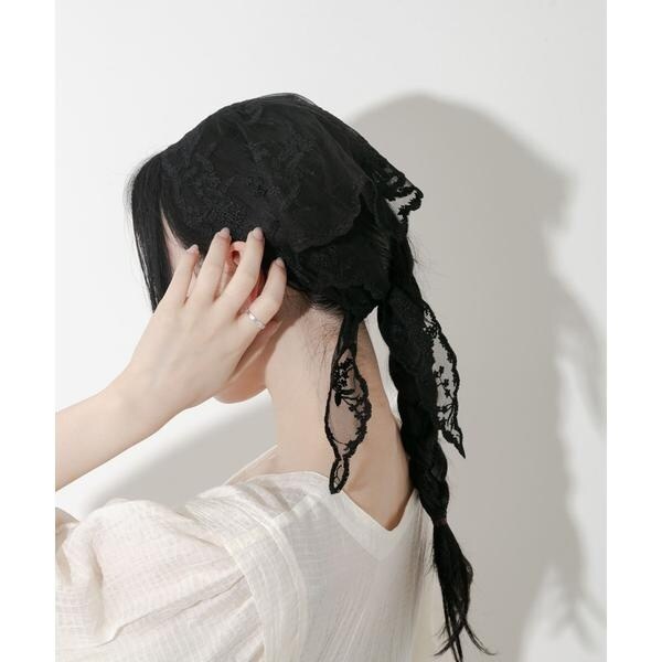 繊細なレースデザインがガーリーな雰囲気のスカーフ。