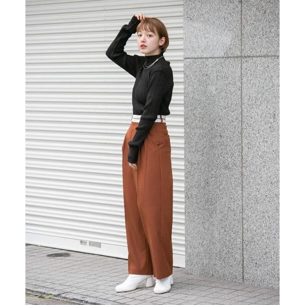 秋の初めに登場したマーベルトデザインパンツがカラーを一新し再登場!トレンドのマーベルトで存在感を高めた一本。ハイウエスト×センタープレスで脚をすっきりと長く見せてくれるのが人気の秘密です。身長別に選べる2サイズ展開も嬉しいポイント。