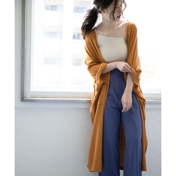 配色のカラーパイピングでアクセントを効かせたガウン。程良く落ち感のある素材を使用することで女性らしさを演出。付属のベルトで前を締めてワンピース風に着るのもおすすめです。大人っぽさを引き上げる3色をご用意しました。
