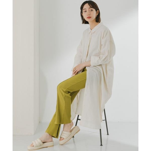 フィット感がありながらもセンターに施されたメローで綺麗なラインを演出し、スタイルアップが叶うリブパンツ。フレアシルエットはカジュアルさを抑えて大人っぽい印象を与えてくれます。オールゴム仕様のストレスフリーな穿き心地で、おうち時間にもおすすめのアイテムです。