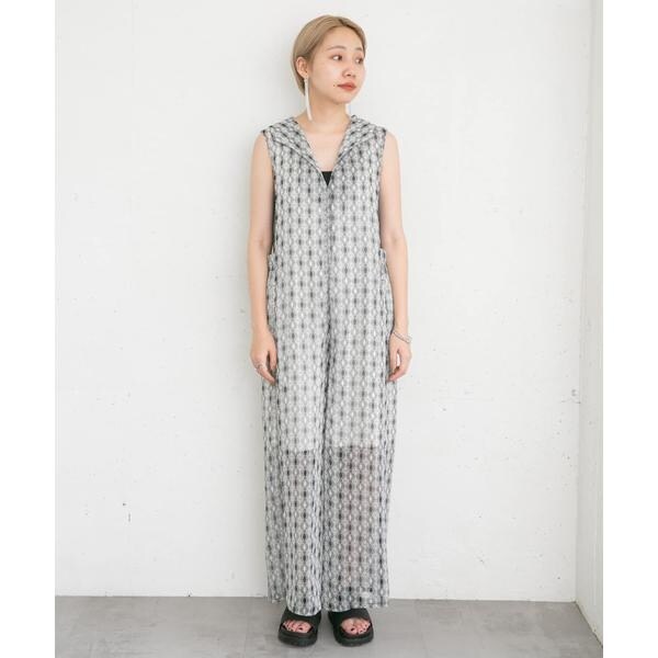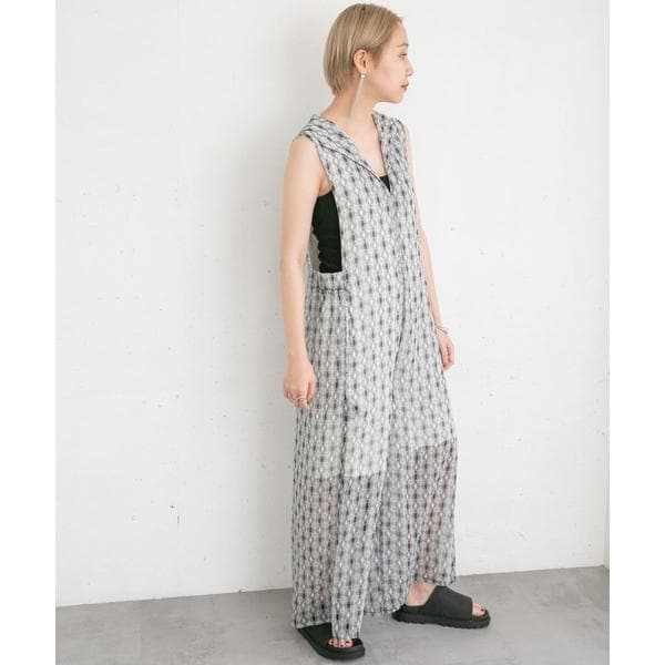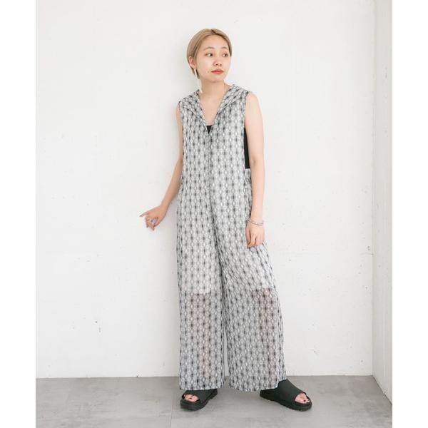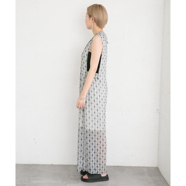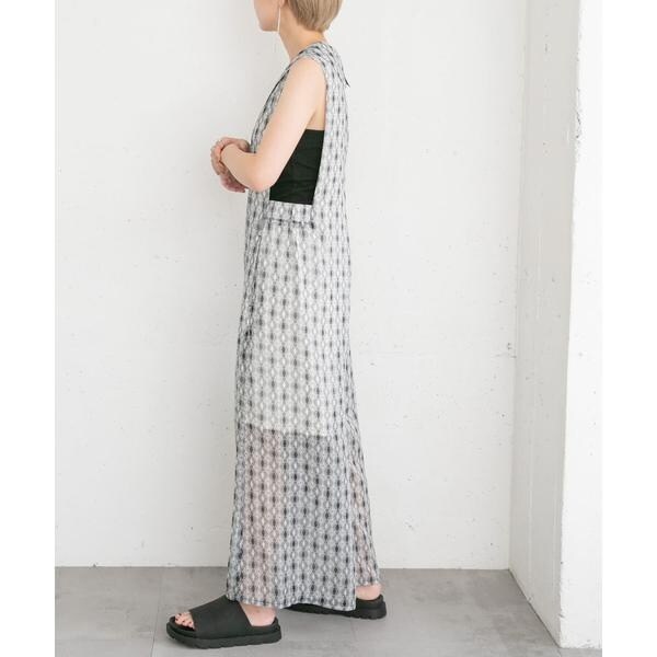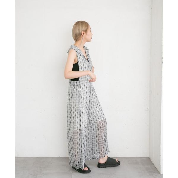 清涼感のある楊柳素材を使用した夏にぴったりなサロペット。存在感抜群のプリント柄は着映えすること間違いなし。上半身〜太腿あたりまで裏地が付いているので透ける心配はなく、足元のシアーさは程良い抜け感も演出します。普段使いのみならずリゾート地にもマッチする1着です。