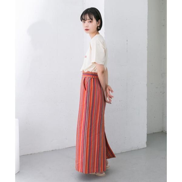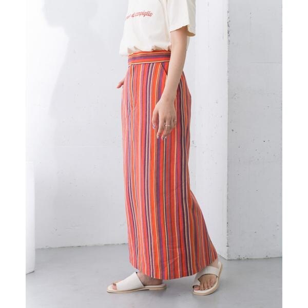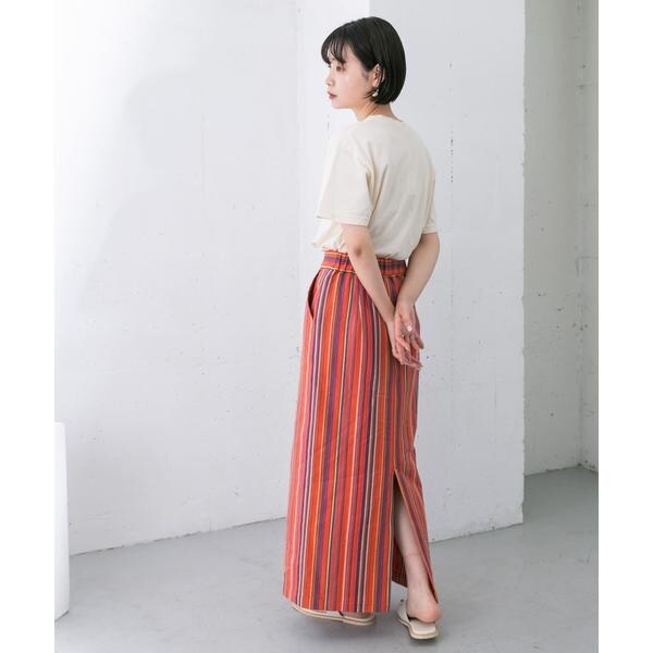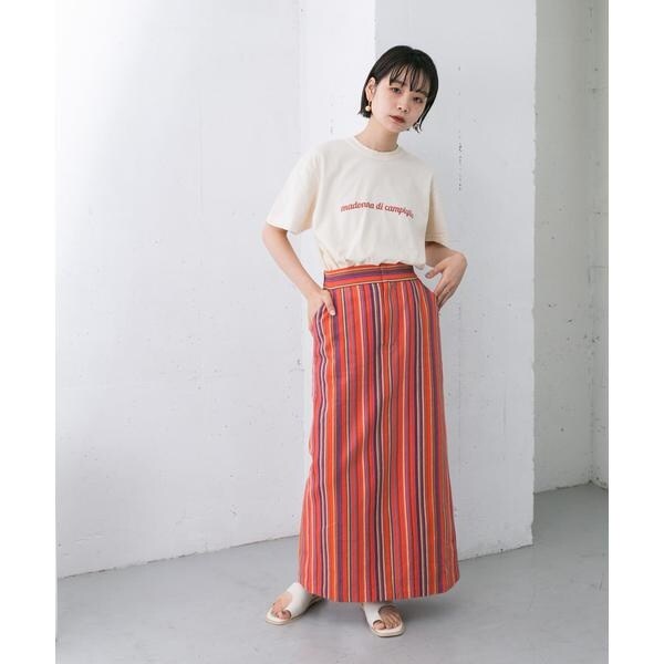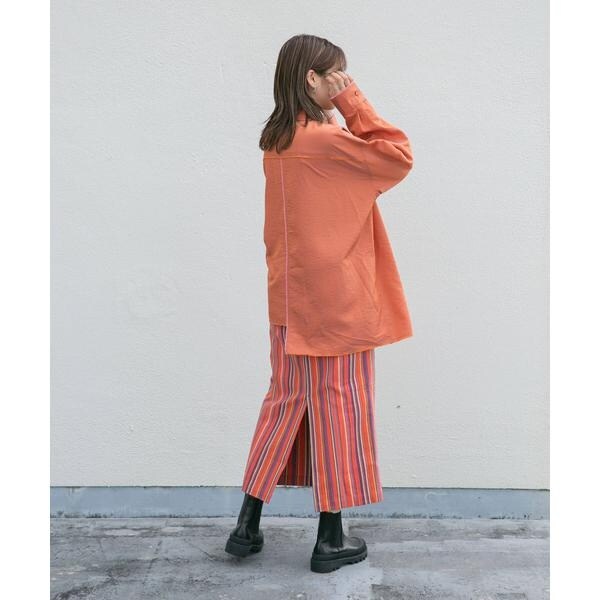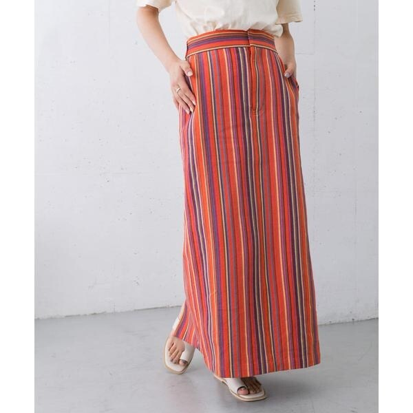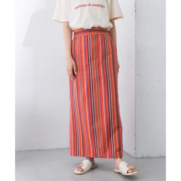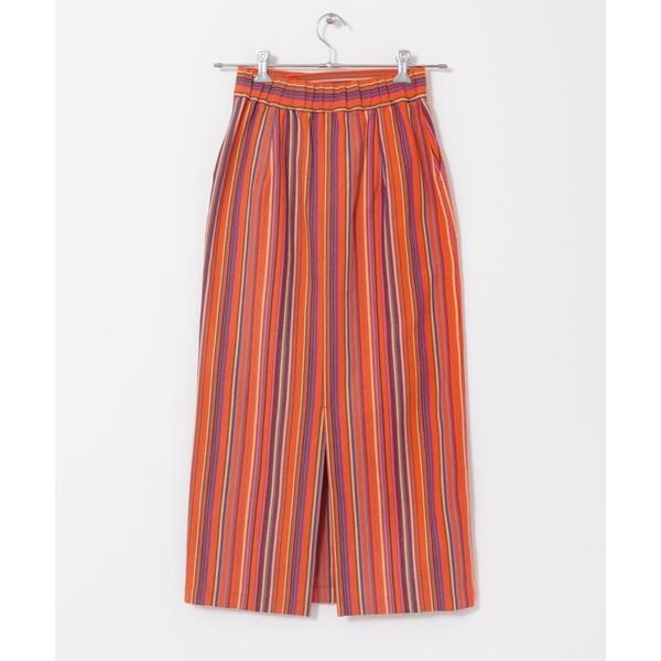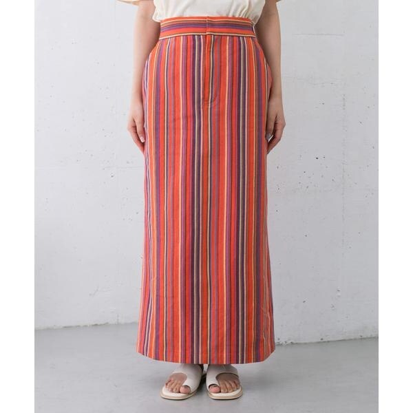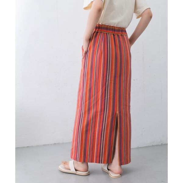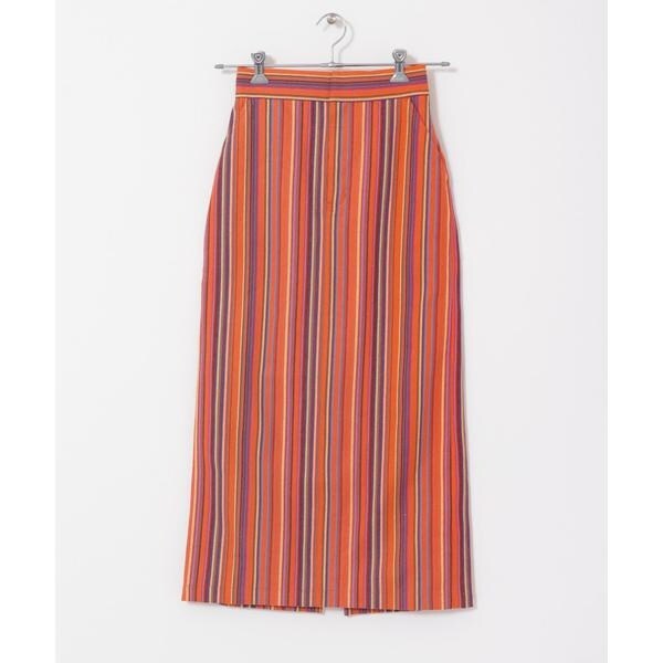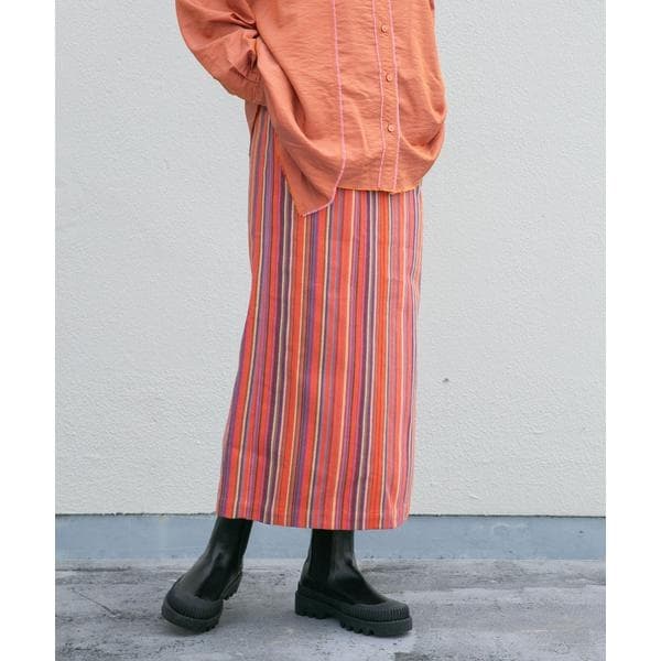 マルチカラーのストライプ柄が目を惹くペンシルスカート。存在感がありつつもベーシックなシルエットで見た目よりも取り入れていただきやすい1着になっています。程よいロング丈が大人っぽい印象を与え、深めに設定したバックスリットは足捌きも抜群です。柔らかい印象のBUTTER MIXとアイキャッチになる鮮やかなORANGE MIXをご用意いたしました。