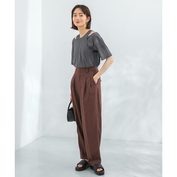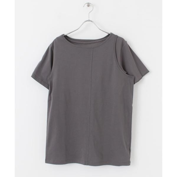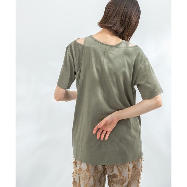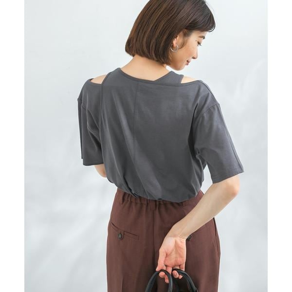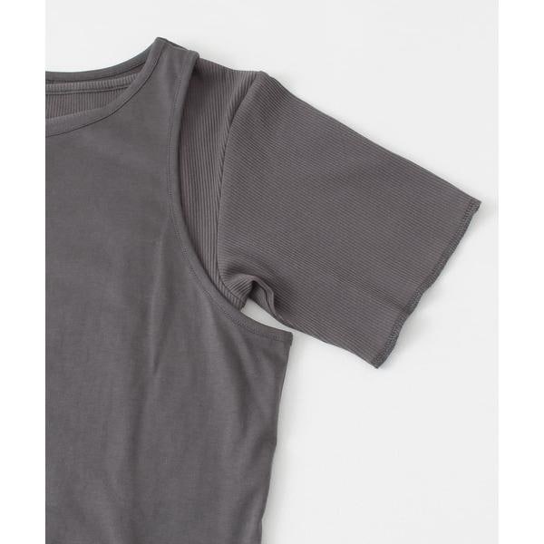 アシンメトリーになったカットソーと、リブ素材のミニ丈のTシャツがセットになったこなれ感たっぷりのアイテム。別々で着用していただくと自然と肩がでるデザインなので夏らしい肌魅せが叶います。ミニ丈のほうを上に重ねて着るのも◎様々なアイテムとレイヤードして着ていただきたい1着です。