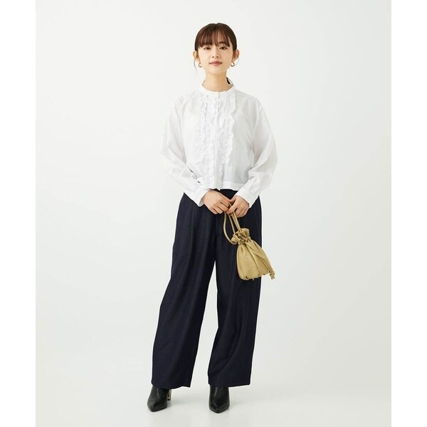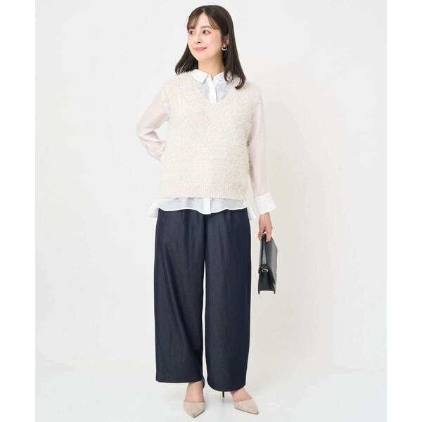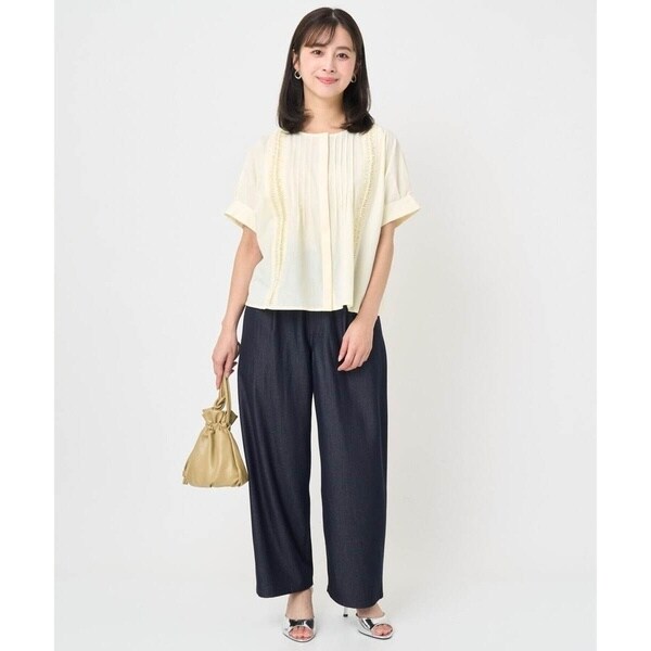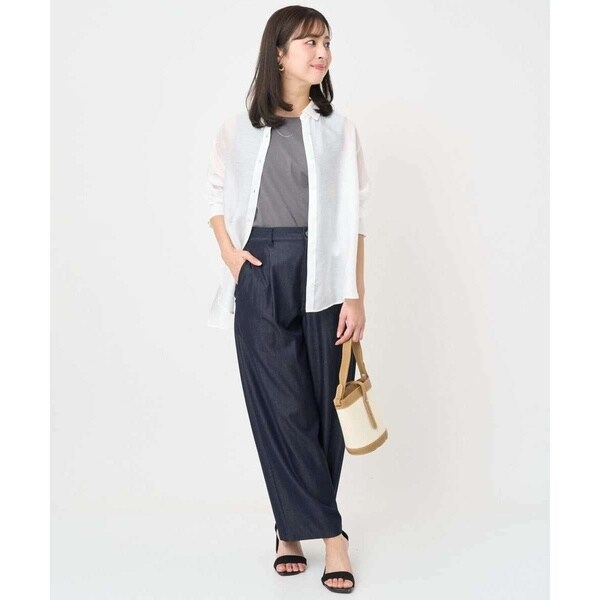 デニム見えのやわらかな素材で仕立てたパンツ。あくまでもデニム見えなのでストレッチも効いていて、着やすさ、扱いやすさも魅力です。