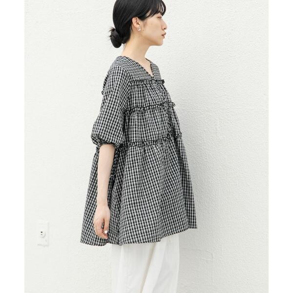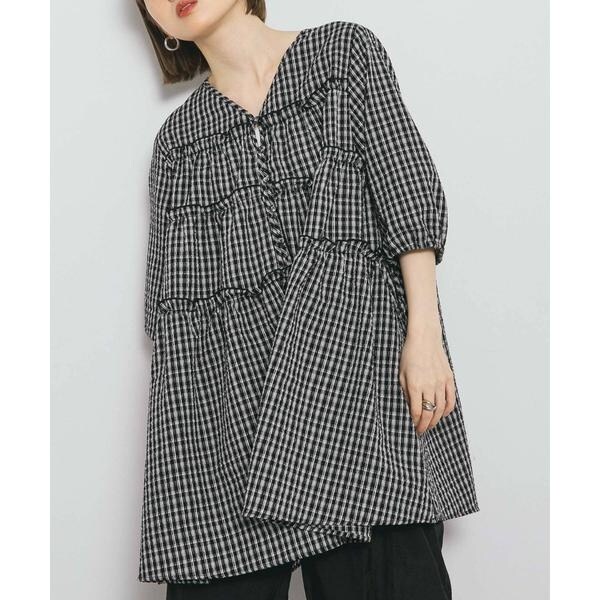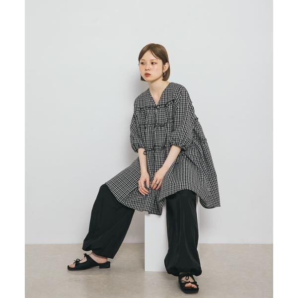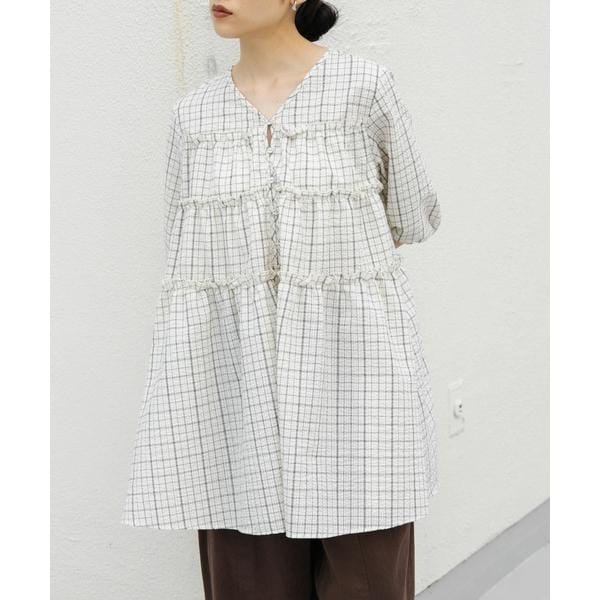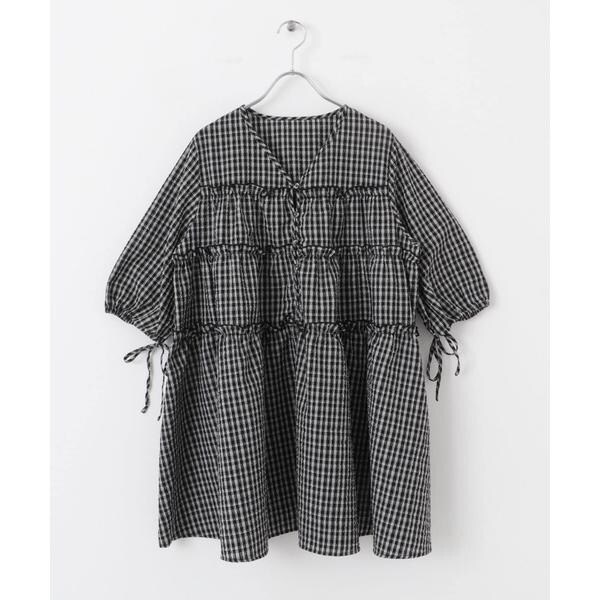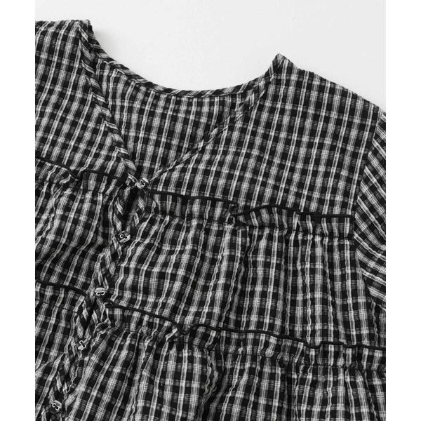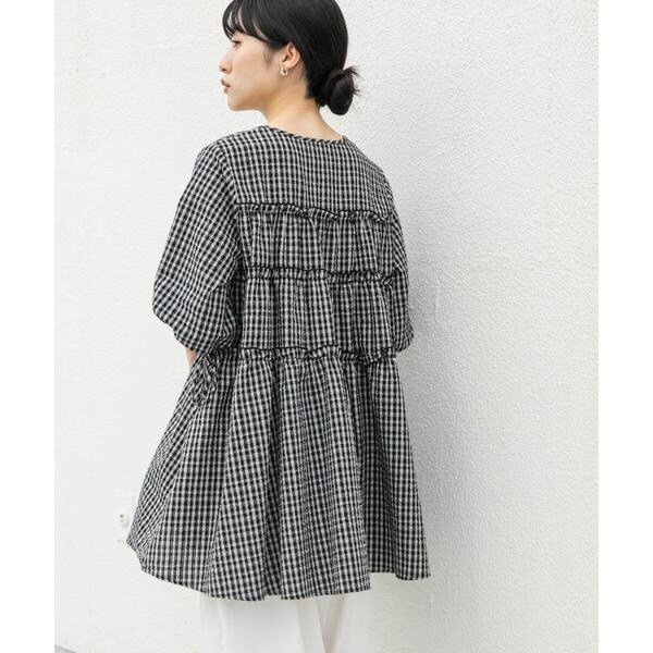 夏にぴったりな涼しげなサッカー素材を使用したチェックミニワンピース。ポコポコとした表面がフェミニンな印象を与えてくれます。少し短めに設定されたティアード切り替えが、目線を上にしてくれるのでスタイルアップが叶います。袖口はゴム仕様で、アクセントになるリボンも目を惹きます。幅広い身長の方におすすめな1着です。