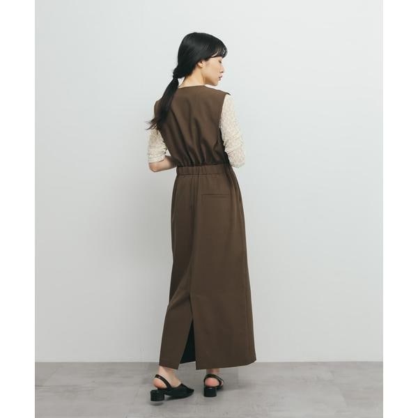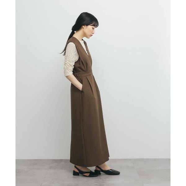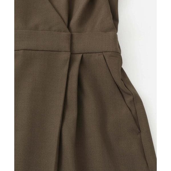 カシュクールデザインがポイントの美シルエットワンピース。肩にタックを入れているので、脇や二の腕カバーが期待でき、後ろゴム仕様になっているため、穿き心地の良さときちんと感の両方を叶えます。オフィススタイルにもぴったりな女性らしい1着です。