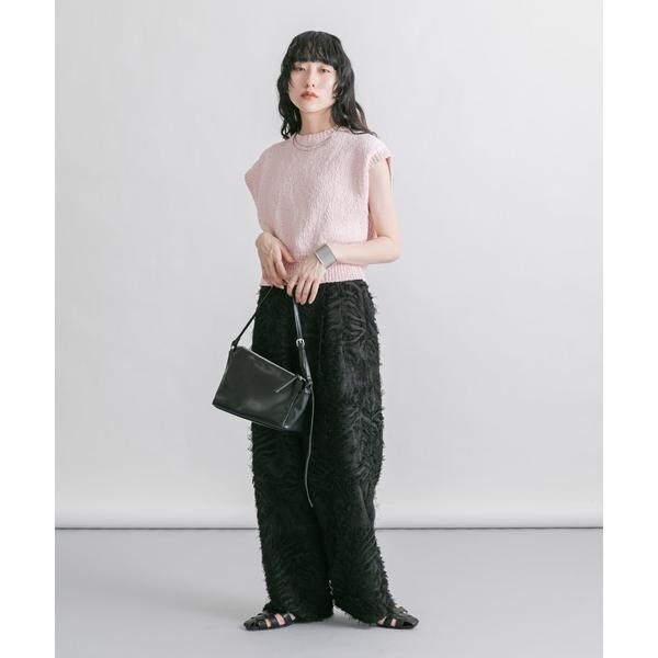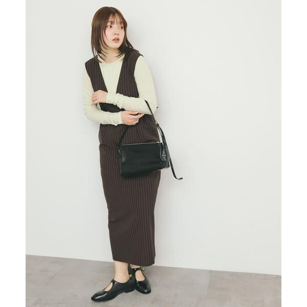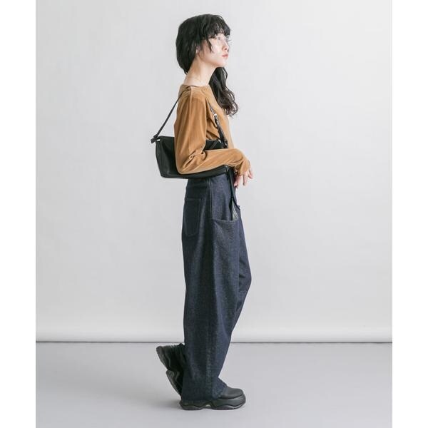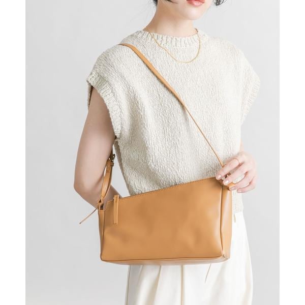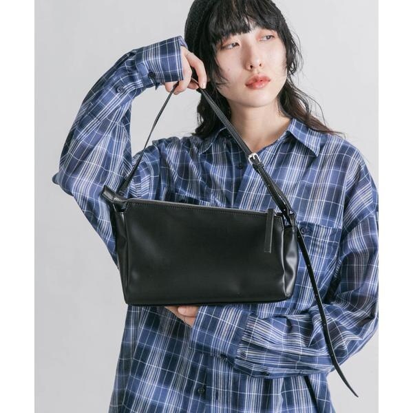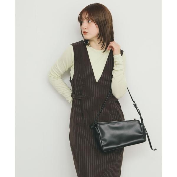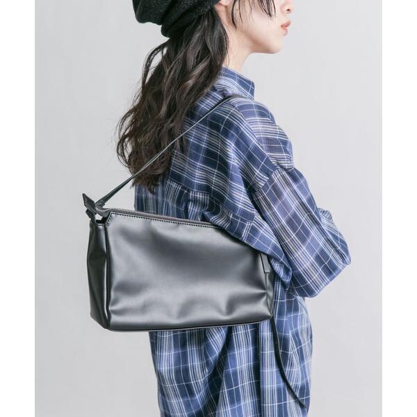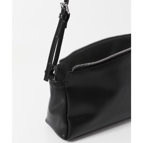 アシンメトリーの開口部が特徴的なショルダーBAG。華奢なショルダーが大人っぽいので、女性らしい小物合わせが叶います。ショルダーは調整可能で斜め掛けはもちろん、短く設定し肩掛けにするとモードな印象も叶います。