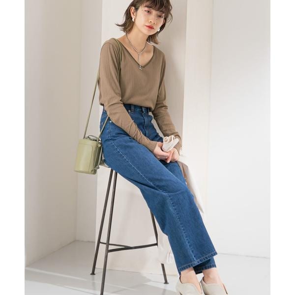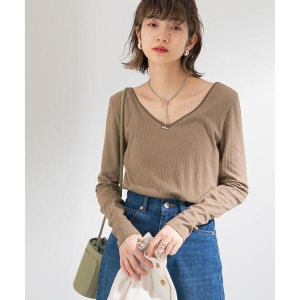 ジャケットやアウターのインナーに最適なサイズ感。タイトなシルエットなのでワイドパンツや落ち感のあるボトムを合わせると大人っぽく仕上がります。