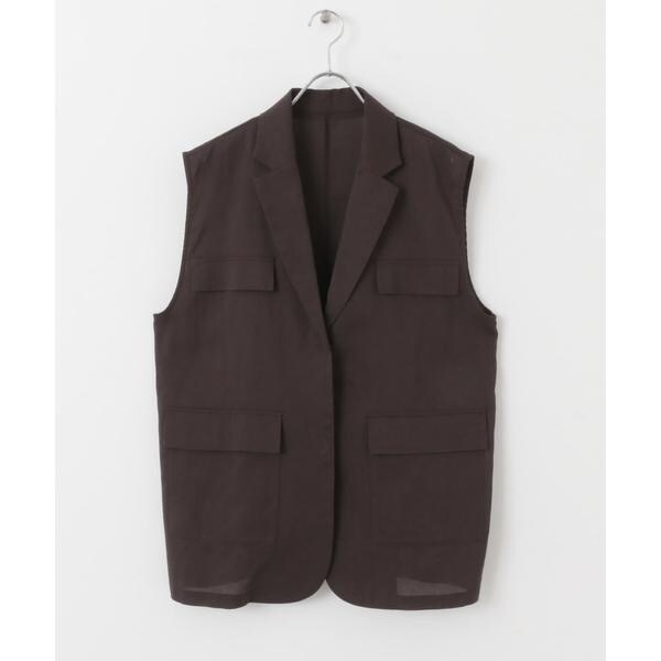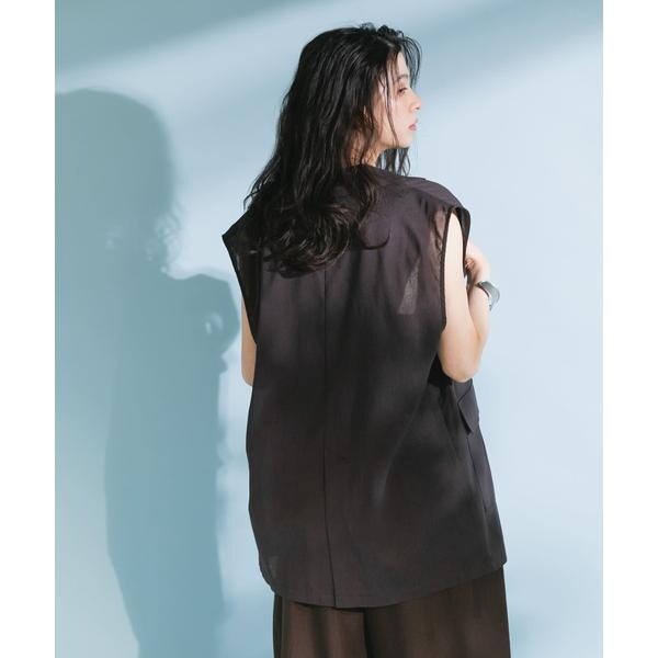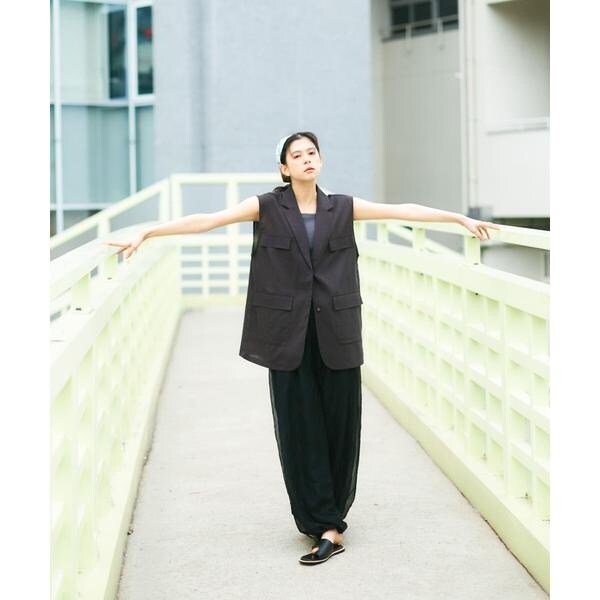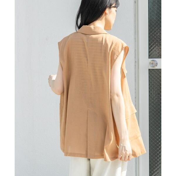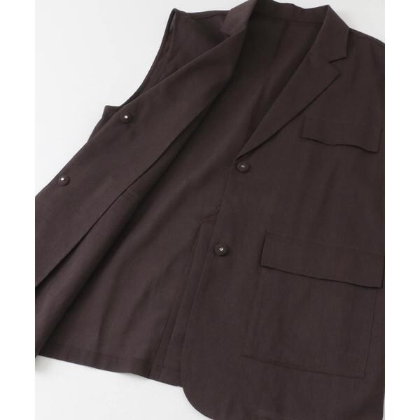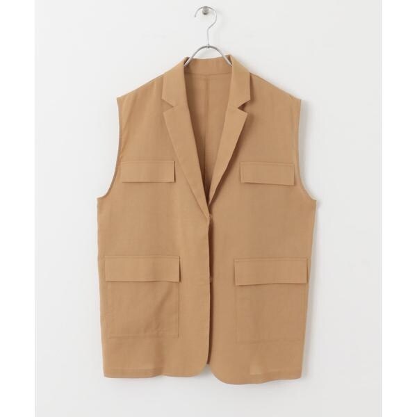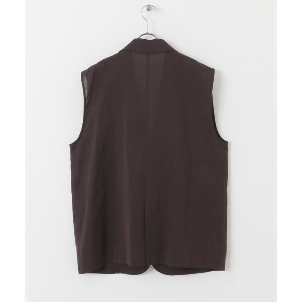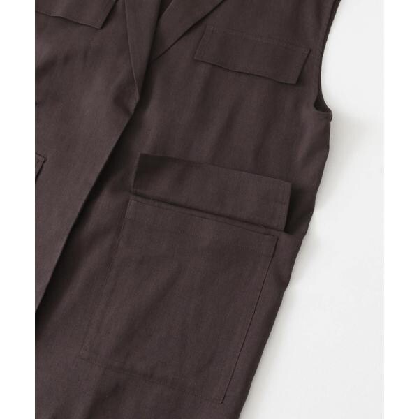 清涼感のあるシャリっとした素材を使用したベスト。少しオーバーめなサイジングと程良い透け感に仕上げているので重たくなり過ぎず着ていただけます。テーラード型ながらも、パッチポケット仕様にしカジュアルダウンしたことでON/OFFの着回しが期待できます。顔周りをすっきりとさせるVネックがレイヤードの幅も広げてくれるアイテムです。