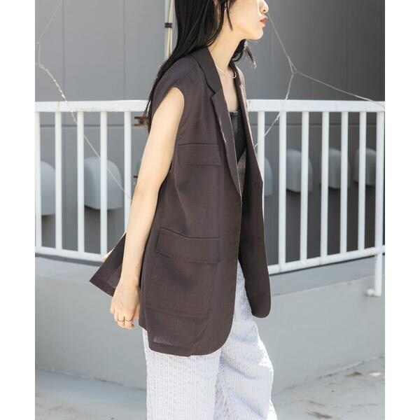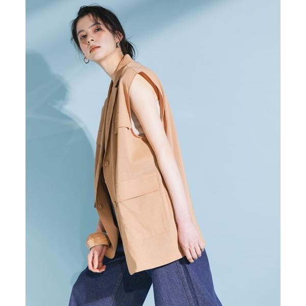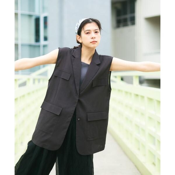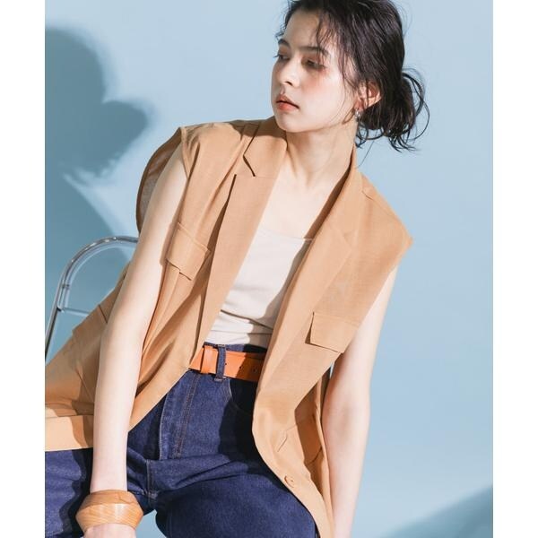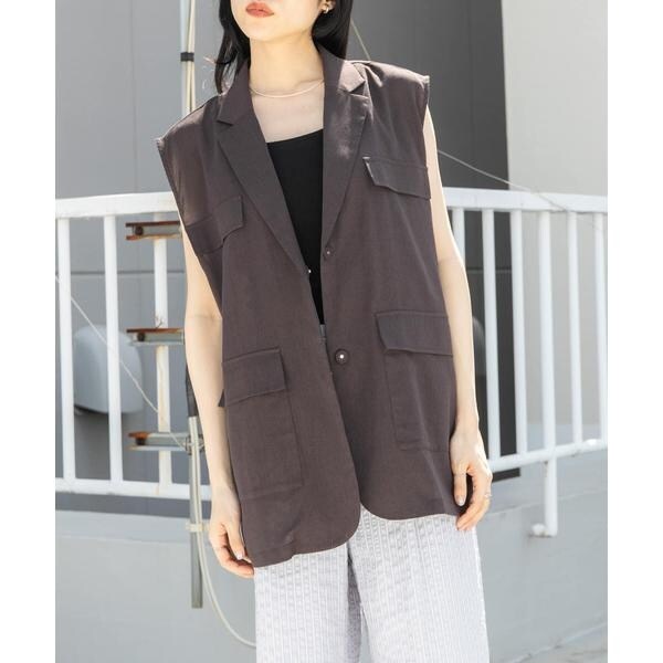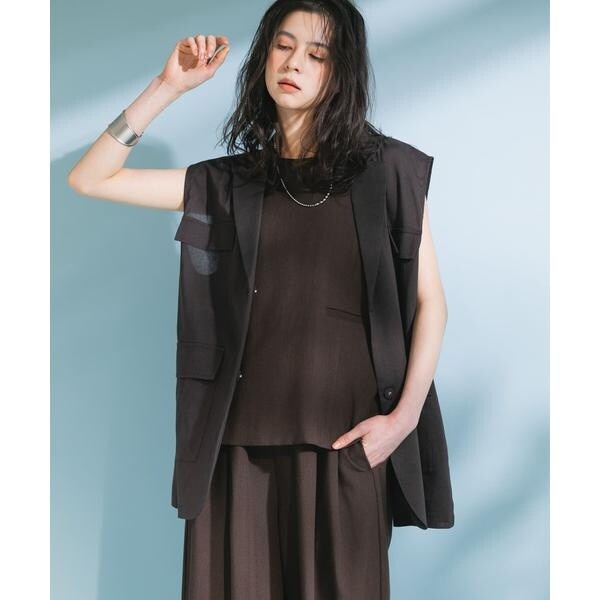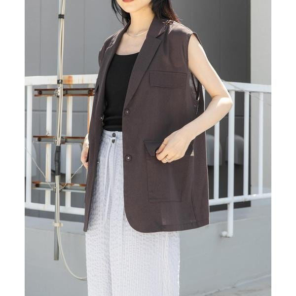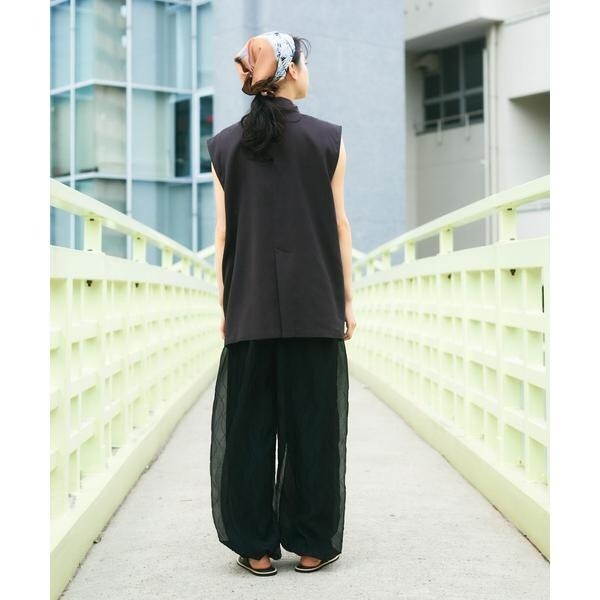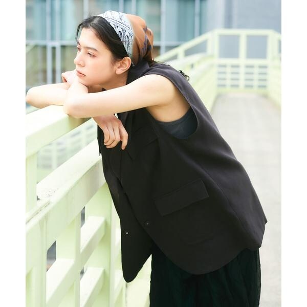 清涼感のあるシャリっとした素材を使用したベスト。少しオーバーめなサイジングと程良い透け感に仕上げているので重たくなり過ぎず着ていただけます。テーラード型ながらも、パッチポケット仕様にしカジュアルダウンしたことでON/OFFの着回しが期待できます。顔周りをすっきりとさせるVネックがレイヤードの幅も広げてくれるアイテムです。