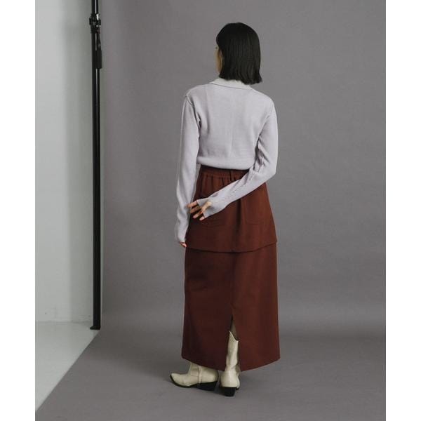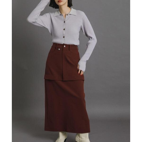 一見シンプルなストレートシルエットのスカートですが、切替部分の釦を外していただくとミニスカートに変化するマルチWAYアイテム。ミニスカートはレイヤード風の巻きスカートとしても活躍します。いつものスタイリングのプラスワンアイテムとしてぴったりです。
