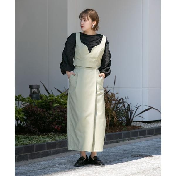 ボリュームスリーブのブラウスやシャツ、透け感のあるトップスと相性抜群。別々でも着用いただけるので様々なスタイリングをお楽しみください。