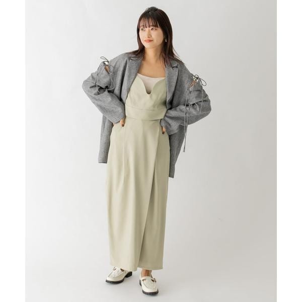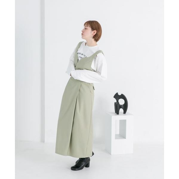 ビスチェとラップ風スカートがセットになった万能アイテムが登場。オールシーズン着ていただける素材なのでインナー次第で印象が変わり、スカートのバックスリットは抜け感を演出してくれます。スタイルアップ効果のあるIラインシルエットや2サイズ展開も注目のポイント。雰囲気の異なるカラーも◎