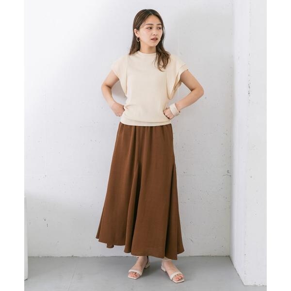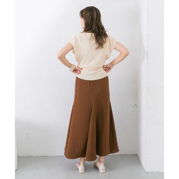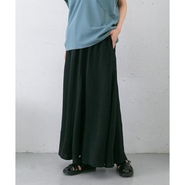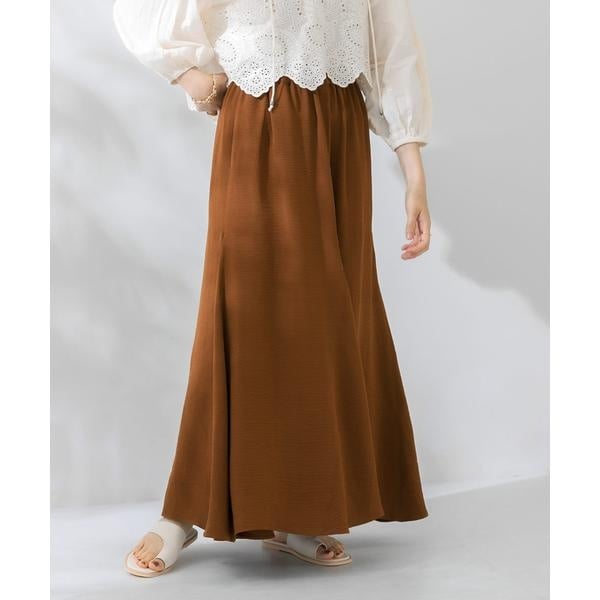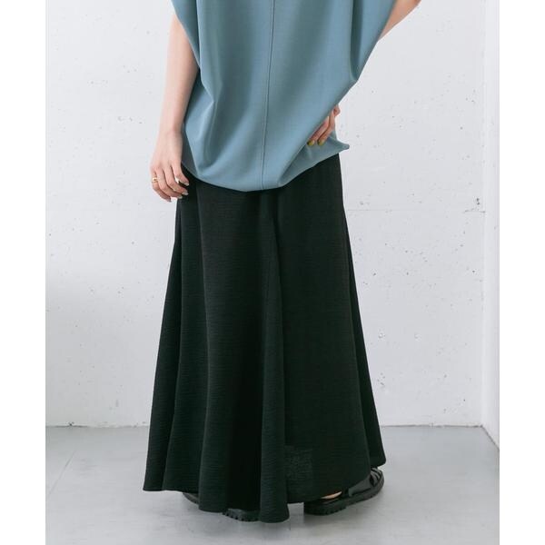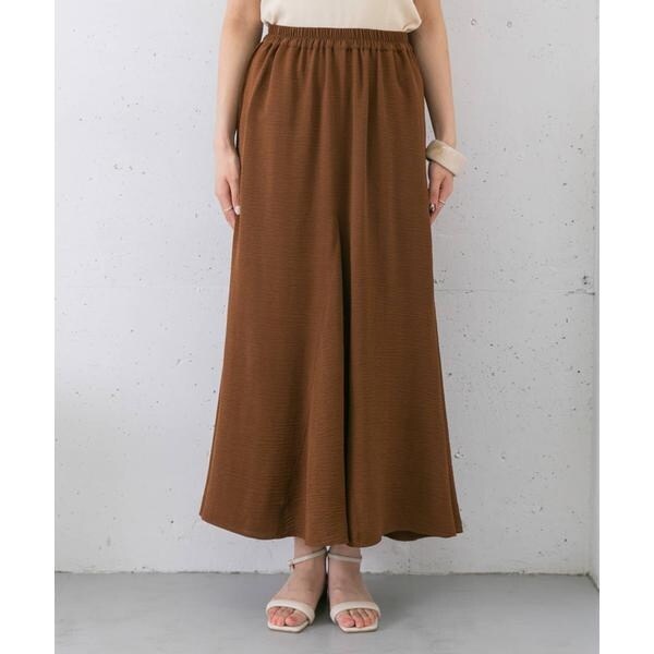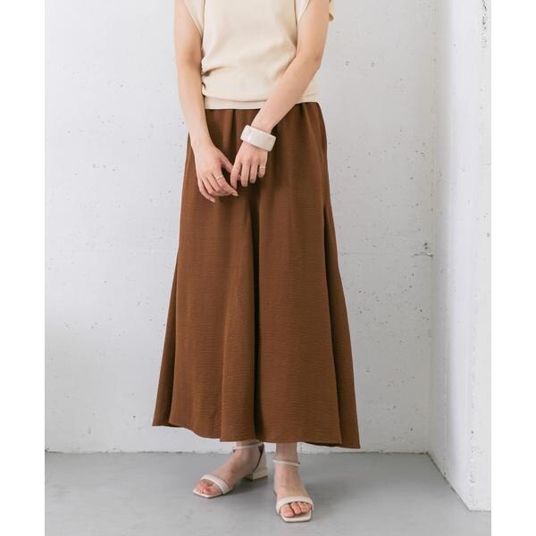 ワードローブにあると嬉しい美シルエットスカートが登場。程良くゆったりとしたサイズ感は身体のラインを拾い過ぎないのがポイント。表面感のあるさらっとした素材も魅力的です。ストレスフリーな穿き心地が叶うウエストゴム仕様も見逃せません。女性らしさを引き上げる1着です。