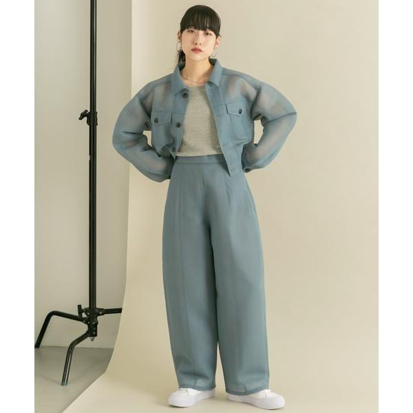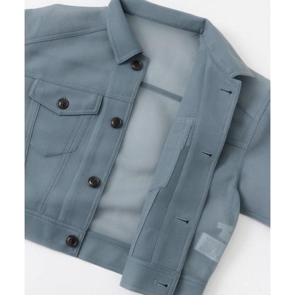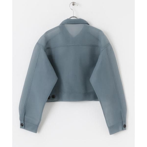ダンボール素材ならではの程良いハリが魅力のジャケット。シアー感もあり軽やかさを演出します。クロップド丈なのでトレンドのボリュームパンツとバランス良く着ていただけます。羽織りとしてのみならず、釦を全て閉じトップスとしてお使いいただくのもおすすめです。