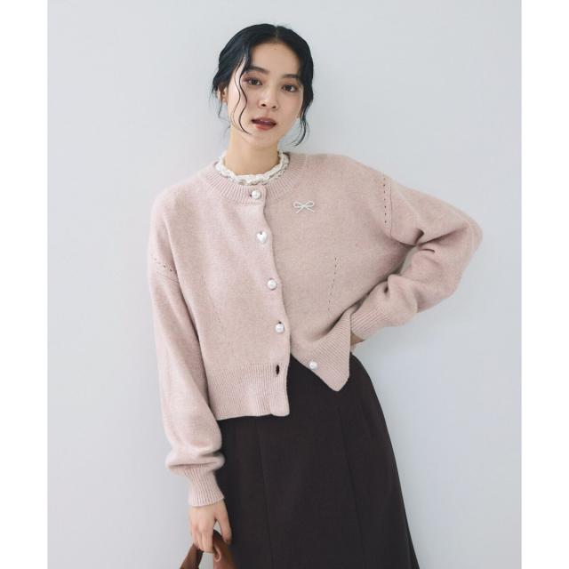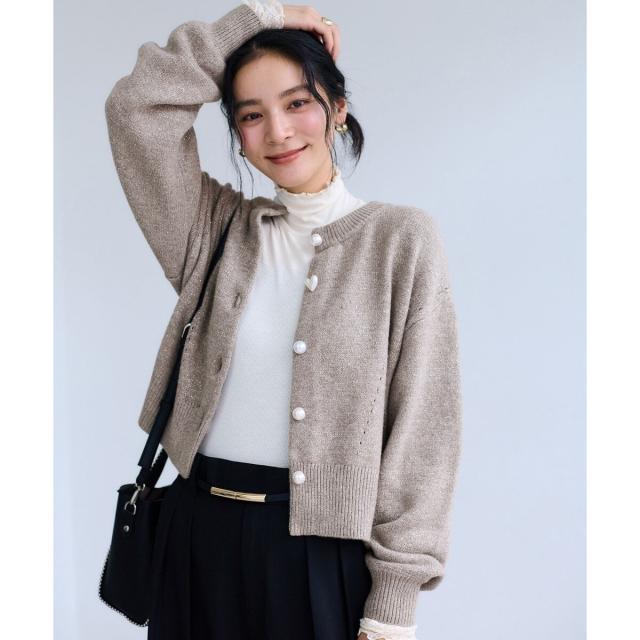 ハートアソートパール釦ラメミックスカーディガン/イージーケア・一部WEB限定カラー