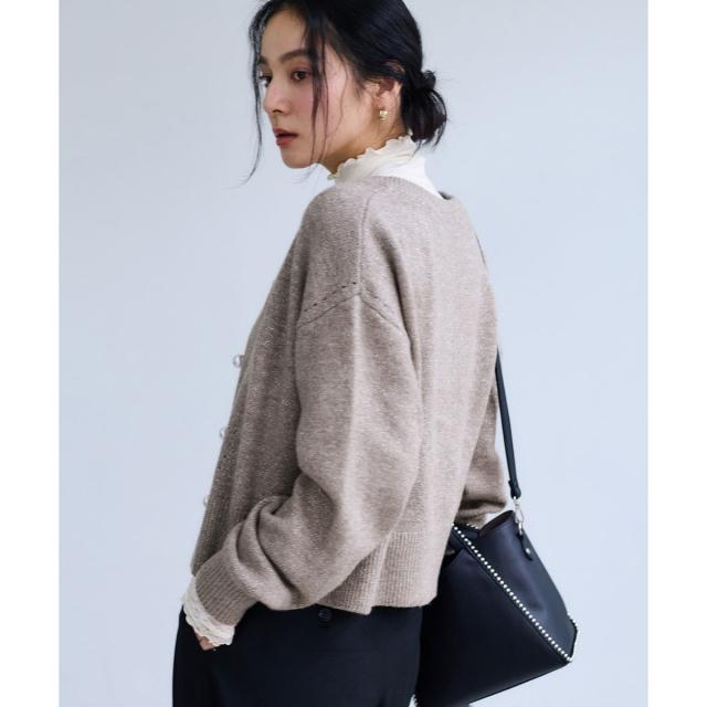 今年はティアードやフリルなどインナーの裾をチラ見せするとワンランク上のスタイリングに。ふわモコ&キラキラでコーデに華やかさが出る、女子の大好きが詰まったカーディガンです。