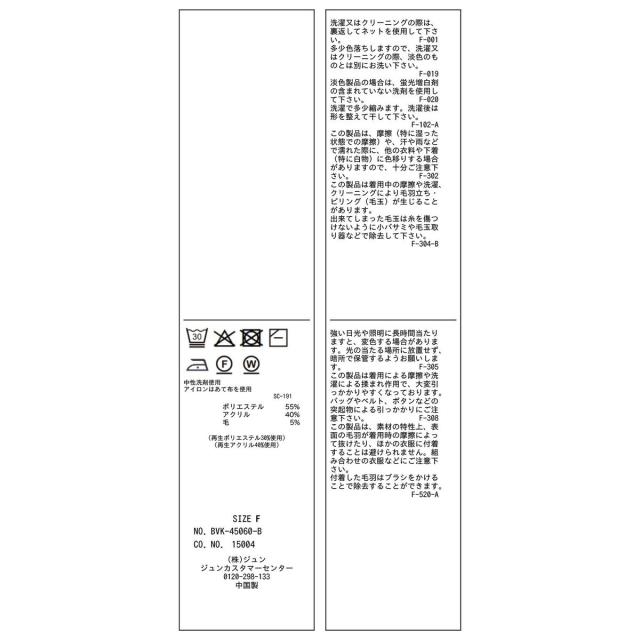■素材:ブラック(01)、チャコール(06)、ライトグレー(08)、ブラウン系(22)、ブルー(44)、パープル系(51)、ピンク系(65):ポリエステル 55% アクリル 40% 毛 5% レッド(60):ポリエステル 79% ナイロン 17% ポリウレタン 4%