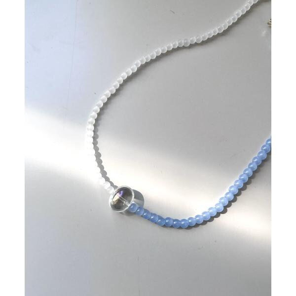 ホワイト×ライトブルーのビーズを使用した清涼感溢れるネックレスをご用意。