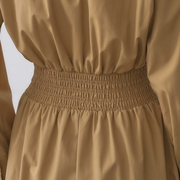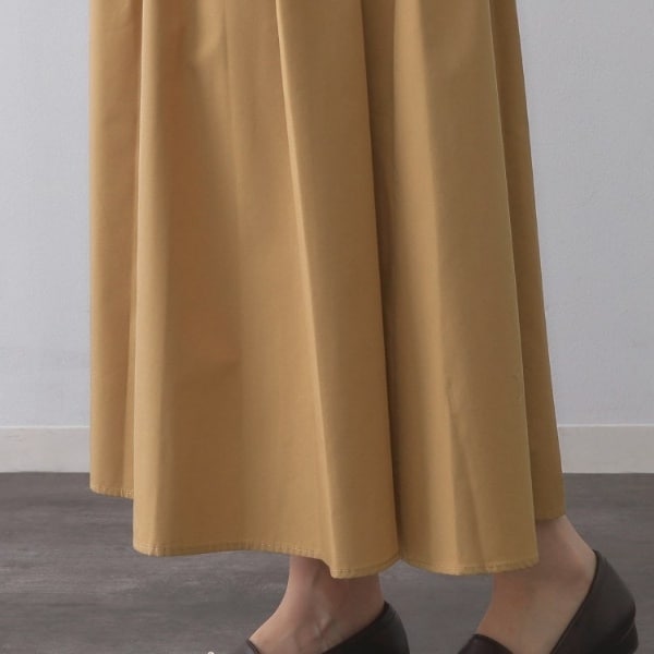 ・ウエストにシャーリングゴムをあしらった仕様で、ウエストマークしつつも楽な着心地がポイント。
