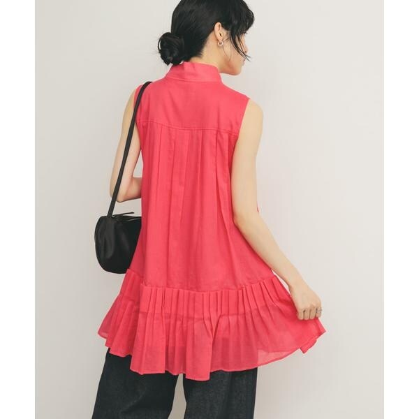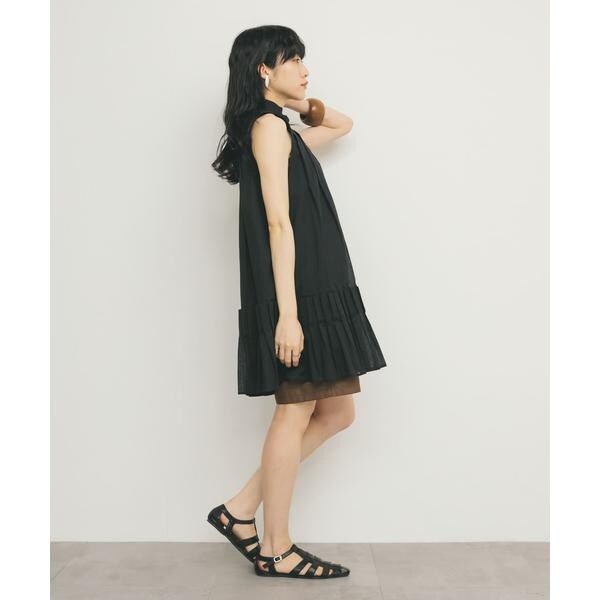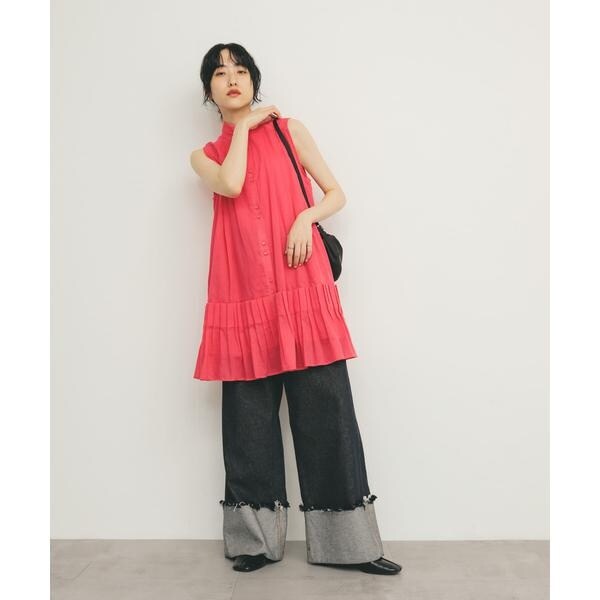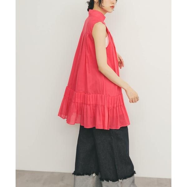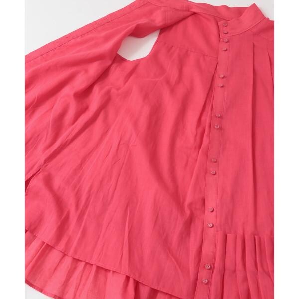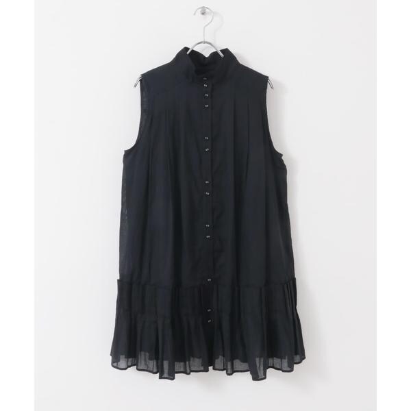 裾のタックプリーツが華やかさなミニワンピース。ボイル素材を使用しているので、軽やかで涼しげな印象を与えてくれます。裾にかけてAラインになったシルエットや、少し高めに設定されたスタンドカラーも特徴的です。大人可愛いが自然と叶うアイテムです。