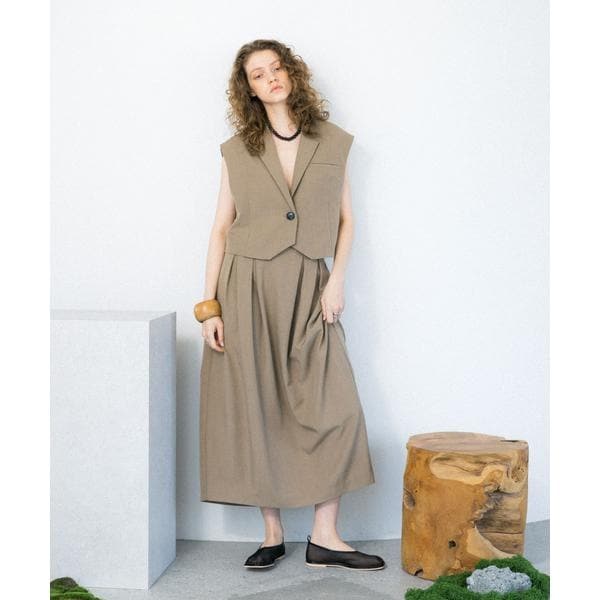 ベーシックなトップスと合わせていただきやすく、タックインしたスタイルが◎レーストップスを着るとより女性らしさをUPさせます。同素材のルーズテーラードベスト(KBA5−27J110)を合わせたセットアップの着こなしもおすすめです。