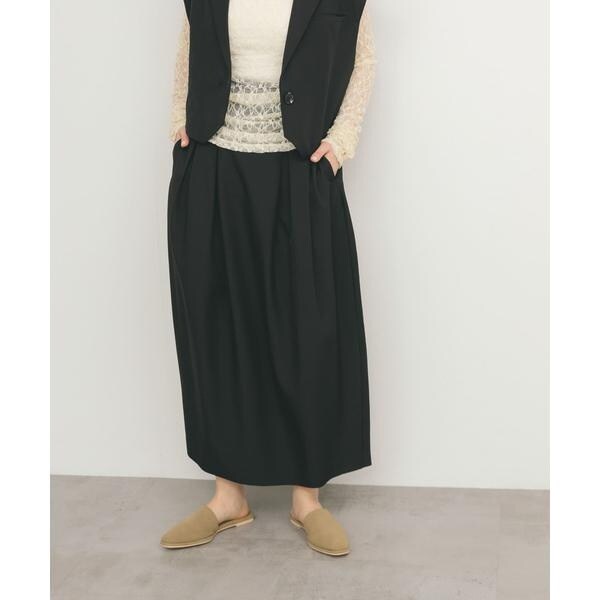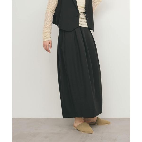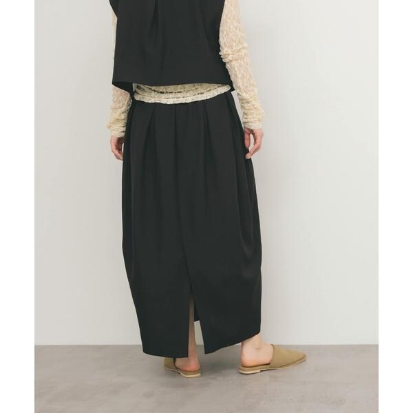 シンプルながらお洒落に仕上げてくれる、コクーンシルエットが特徴的なスカート。ウエスト部分は少し太めに設定し、後ろゴム仕様でスタイルアップしつつ楽に履いていただけます。多めにとったタックデザインもポイント。ベーシックトップスと好相性なアイテムです。
