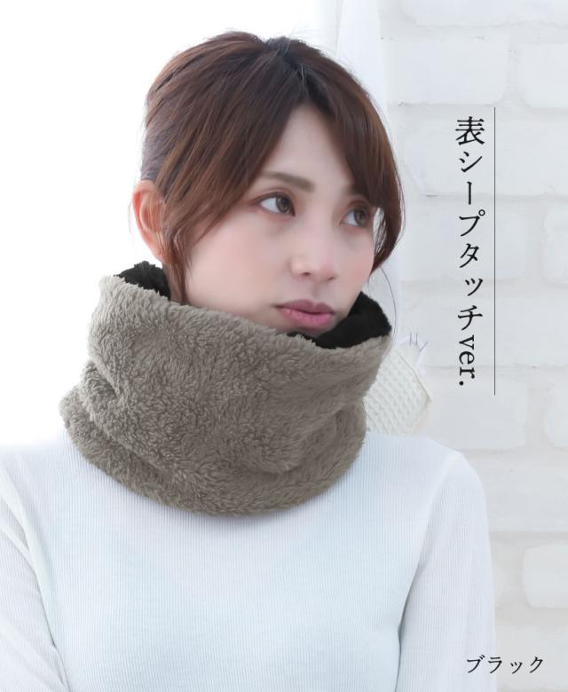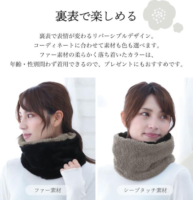 フェイクファーの綺麗めおしゃな ネックウォーマー。裏面はふわふわシープボアのリバーシブル仕様♪ コーデのワンポイントや、通勤・通学用としても使いやすくておすすめです。