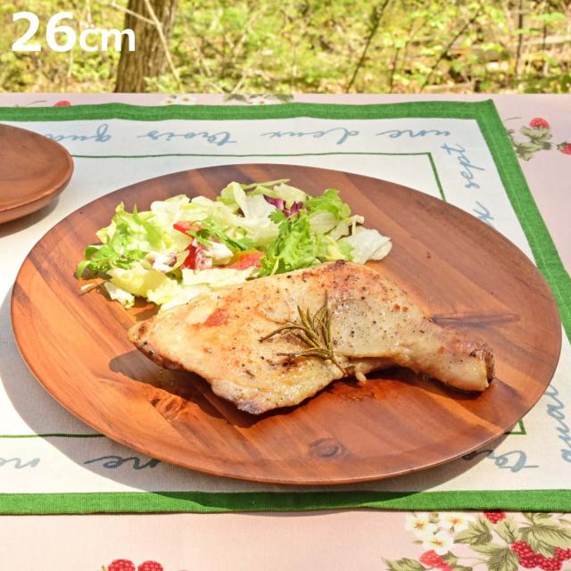 プレート アカシア 薄型プレート ラウンド 直径26cm ( 木製 皿 お皿 おしゃれ かわいい 北欧 北欧風 食器 木製食器 カフェ風 )