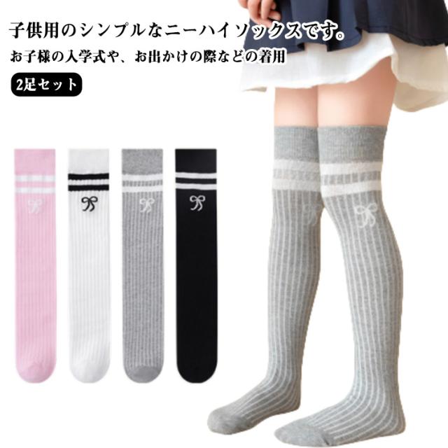 キッズ クリスマス キッズ オーバーニーソックス ニーハイソックス リボン刺繍 2足セット 靴下 子供 グレー 靴下 ホワイト ブラック 黒 発表会 ハイソックス 白 ひざ上 入学式 卒業式 通学 ピンク 2足セット 秋 春夏 膝上 子供用 定番 女の子 レッグウェア