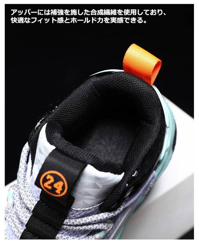 | 17.5cm?23.0cm スピード感のあるなめらかな動きをサポートするハイカットバスケットシューズ アウターソールの接地面積を広くとっている つま先衝突設計、ヒール補強設計、効率的かつ安定な動き。 アッパーには補強を施した合成繊維を使用しており、快適なフィット感とホールド力を実感できる | |