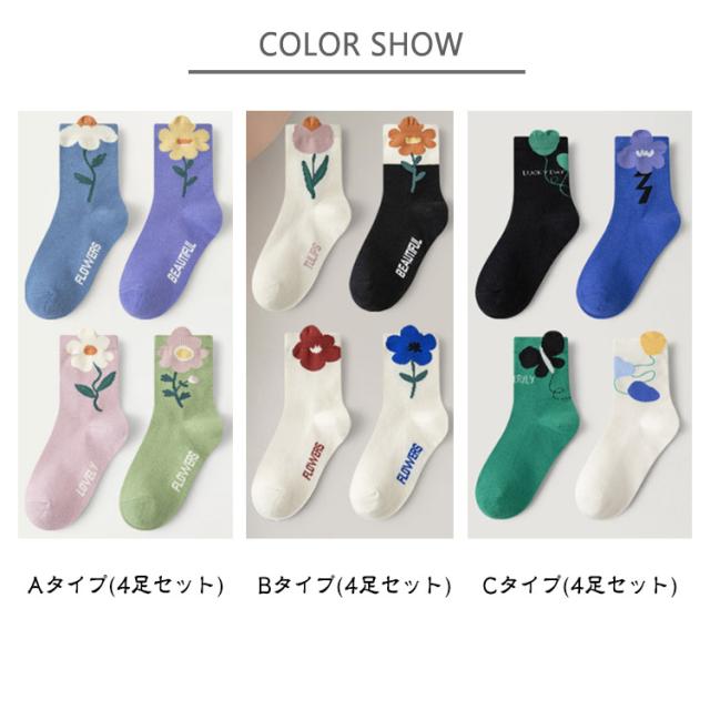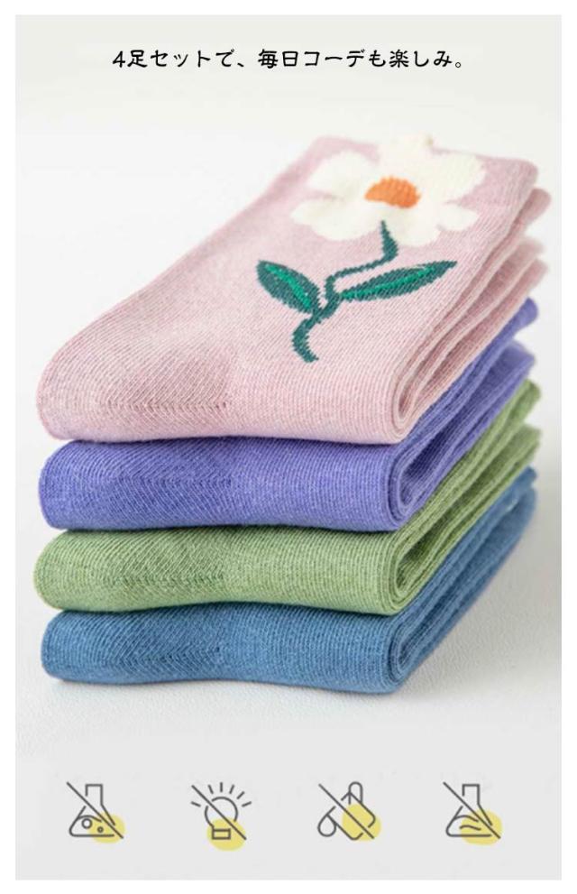 クルー丈 キッズ おしゃれ 4足組 フォーマル 靴下 かわいい ソックス 女の子 花柄 キッズ用 子供 靴下 通園 冬 女児 伸縮性抜群 綿 可愛い おしゃれ 秋 コットン 幼稚園 春 未就学 小学生 中学生 ソックス プレゼント 誕生日 贈り物