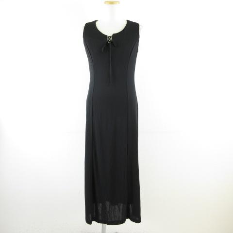 【中古】レストローズ L'EST ROSE ワンピース ノースリーブ ロング レースアップ 黒 *T981 レディース