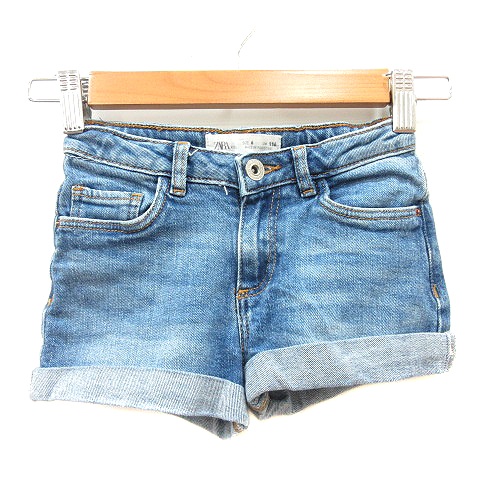 【中古】ザラ ZARA KIDS デニムパンツ ジーンズ ショート ウォッシュ加工 ロールアップ 116 紺 ネイビー ●RY キッズ