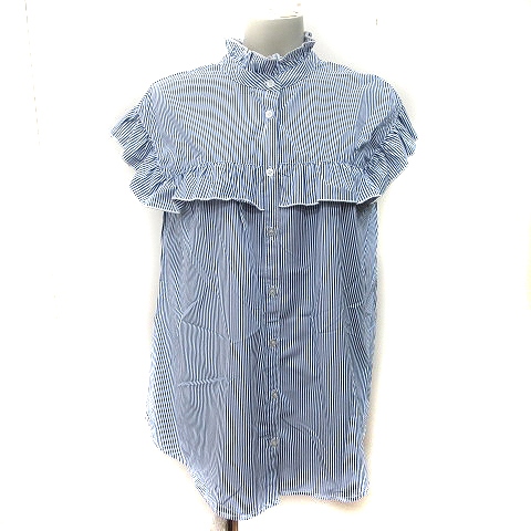 【中古】ディスコート Discoat シャツ ブラウス ストライプ 半袖 フリル F 紺 ネイビー /YI レディース