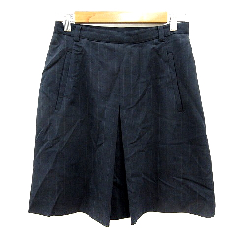 【中古】エレントレーシー ELLEN TRACY プリーツスカート ワンボックス ミニ ストライプ ウール 2 M 紺 ネイビー