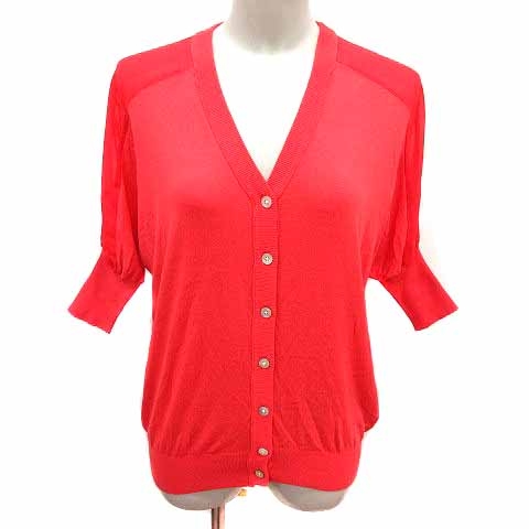 【中古】プラステ PLST カーディガン ニット Vネック ドルマンスリーブ 七分袖 2 M 赤 レッド /YK レディース