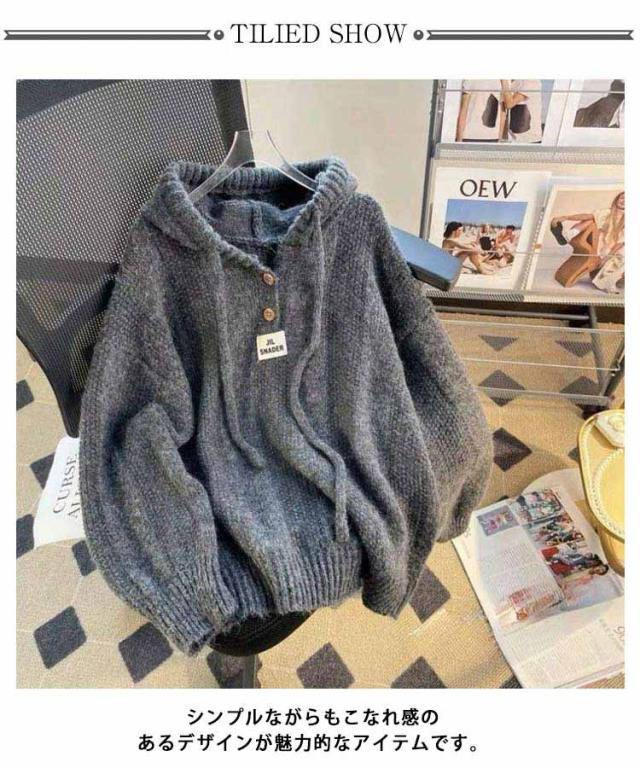 ニットパーカー レディース パーカー 長袖 ニット セーター パーカー トップス ドルマン もこもこパーカー 秋冬 プルオーバー フーディニット ぽわん袖 無地 ゆったり 大きいサイズ 体型カバー 着回し 無地 シンプル