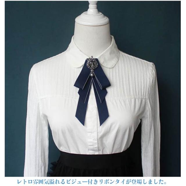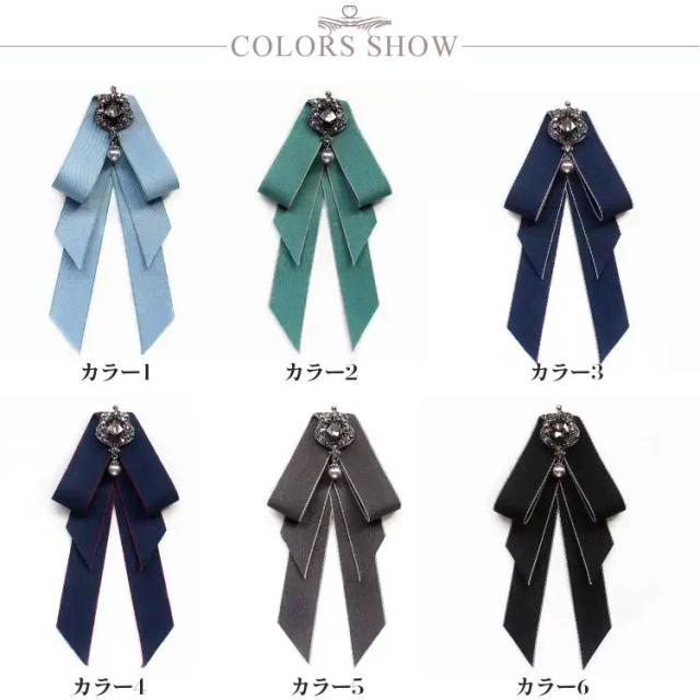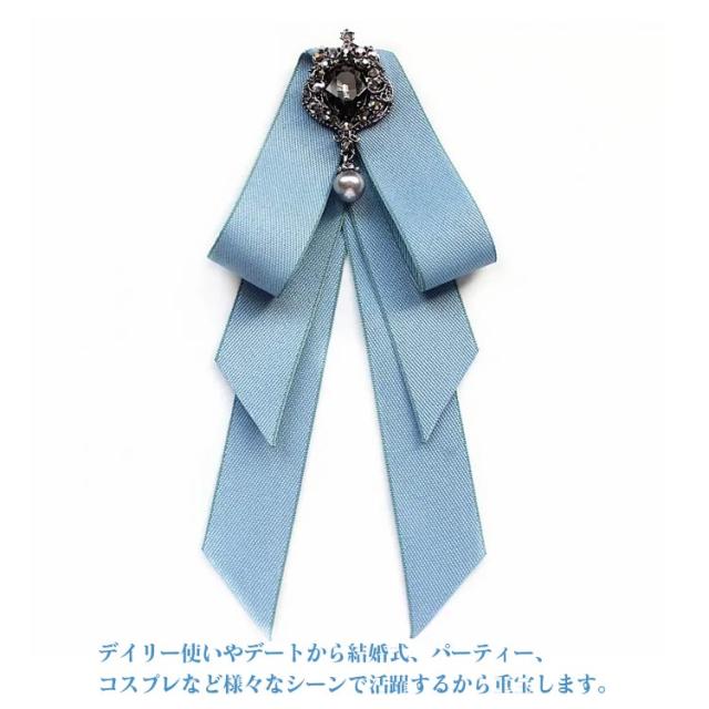 送料無料 制服 リボン 結婚式 ロング リボンブローチ リボンタイ ビジュー付き レトロ パーティー ピン 発表会 入学式 演奏会 普段使い アンティーク 優雅 スーツ かわいい 華やか 子供 大人 フォーマル アクセサリー
