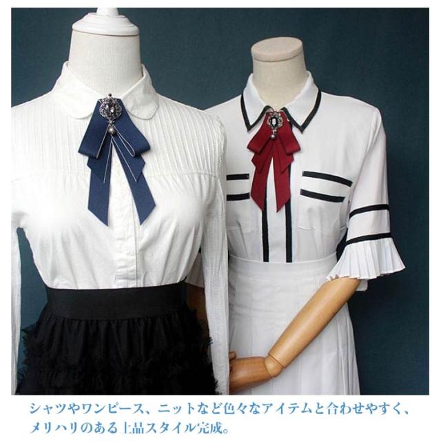 | 全11色、いつものスタイルを新鮮な印象に変えてくれるリボンタイ。 レトロ雰囲気溢れるビジュー付きリボンタイが登場しました。 シャツやワンピース、ニットなど色々なアイテムと合わせやすく、メリハリのある上品スタイル完成。 デイリー使いやデートから結婚式、パーティー、コスプレなど様々なシーンで活躍するから重宝します。 | |