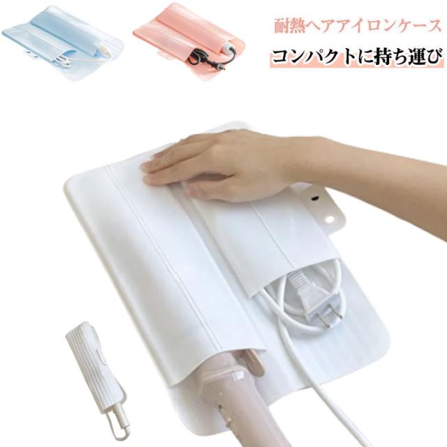 ヘアアイロンポーチ 耐熱 シリコン ヘアアイロンケース ヘアアイロン ケース 収納 2点セット 旅行 耐熱 ヘアアイロンポーチ かわいい 便利グッズ 電源コード用ポケット付き ヘアアイロン収納 紛失防止 キズ防止 収納ケース 送料無料