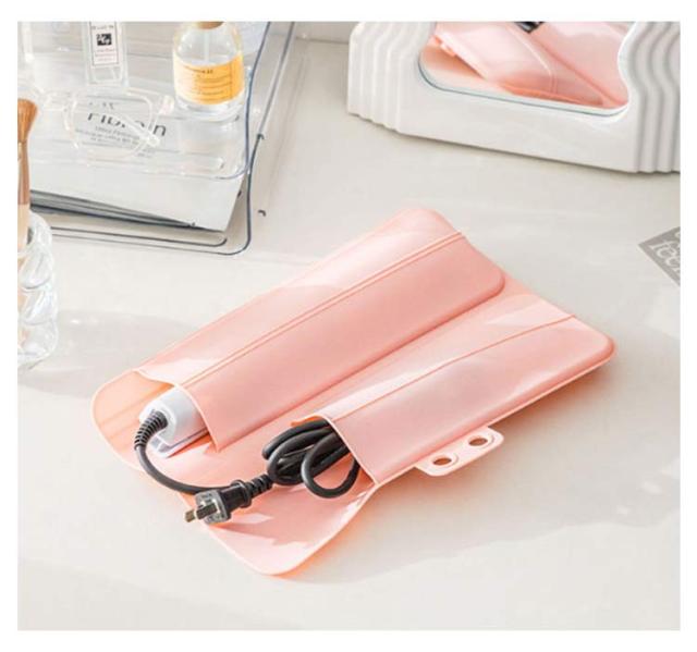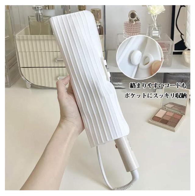 | 耐熱ヘアアイロンケース 全体耐熱素材なので、使用直後の熱々のヘアアイロンも出し入れできます。一時置き場にも◎ 絡まりやすいコードもポケットにスッキリ収納。 コンパクトに持ち運び、旅行・出張に大活躍。 | |