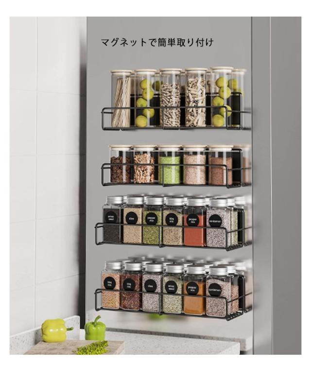 | マグネット冷蔵庫サイドラック 使いやすい位置に美しく並べて収納 マグネットで簡単取り付け 磁石が付くキッチンパネルや冷蔵庫などに取り付けられる よく使う調味料をひとまとめにしたり、シンクではスポンジや洗剤の収納にも活躍。 | |