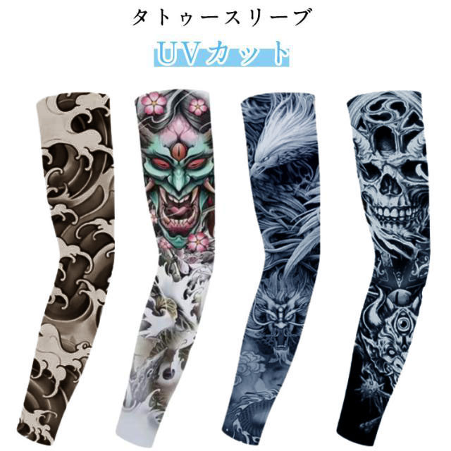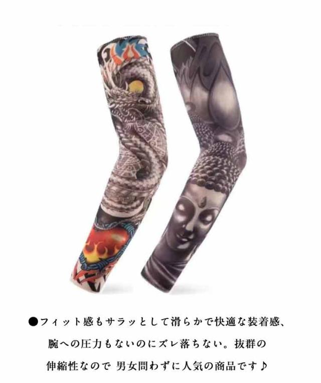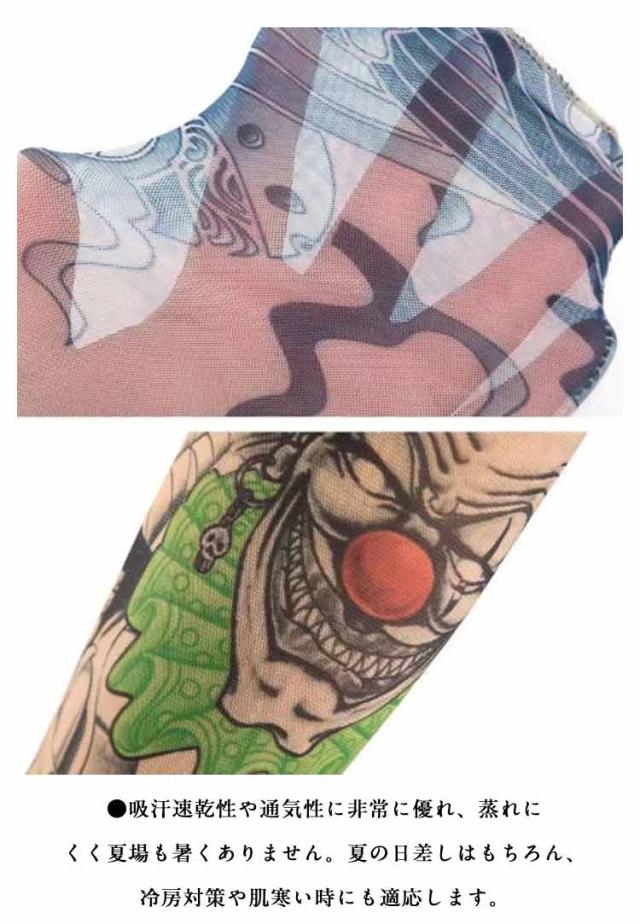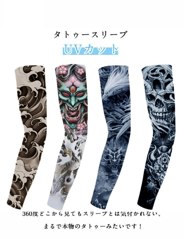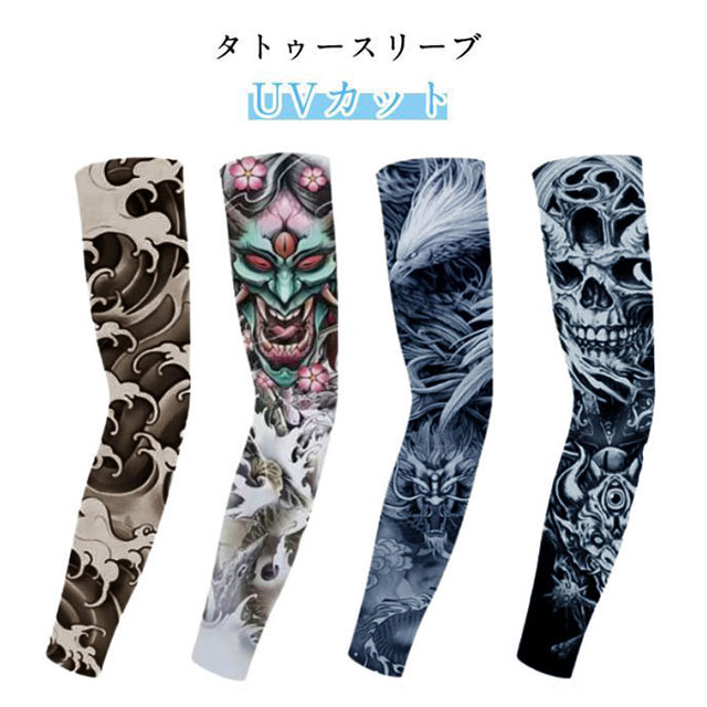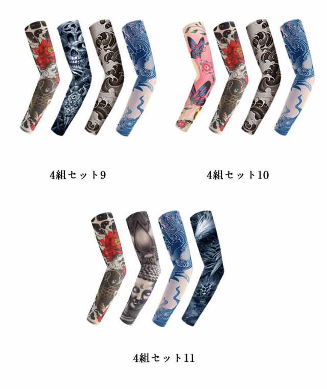 タトゥースリーブ 4組/8枚 肘サポーター 和柄 UV 刺青 入れ墨 入墨 デザイン タトゥー アームウォーマー 男性 アームカバー 煽り運転防止 仮装 コスプレ 防犯用 あおり運転 サイクリング 日焼け 防止 通気性 薄手 タトゥー オシャレ メンズ ファッション 涼しい 送料無料