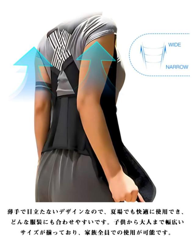 | 【猫背矯正 & 姿勢改善】背筋を自然に伸ばし、肩の位置を正しく保つことで猫背や巻き肩を効果的に矯正します。姿勢を改善することで、体のバランスが整い、健康的なライフスタイルをサポートします。 【通気性抜群】高通気性のメッシュ素材を使用しており、長時間の着用でも蒸れずに快適。特に暑い時期や長時間のデスクワークに最適です。 【自由調整】ベルト部分は調整可能で、自分の体型や好みに合わせてフィット感を自在に調整できます。サイズ調整が簡単で、成長に合わせて長期間使用できます。 【脱着簡単】シンプルな設計で、誰でも簡単に着脱できます。初心者でも安心して使用でき、忙しい日常でも手間なく利用可能です。 【男女兼用・大きいサイズも対応】 男性、女性、子供用のサイズがあり、家族全員で使える設計です。大きいサイズもご用意しており、幅広い体型に対応しています。 【脇の痛みを軽減】脇に負担がかからないよう配慮されたデザインで、長時間の着用でも脇が痛くなりにくいです。 【バストアップ効果】 正しい姿勢をサポートすることで、自然なバストアップ効果も期待できます。 日常生活や長時間のデスクワーク、スマートフォンの使用で姿勢が気になる方へ。猫背矯正ベルトは、自然で快適な姿勢をサポートし、背筋を美しく整える理想的なアイテムです。 薄手で目立たないデザインなので、夏場でも快適に使用でき、どんな服装にも合わせやすいです。 子供から大人まで幅広いサイズが揃っており、家族全員での使用が可能です。 | |