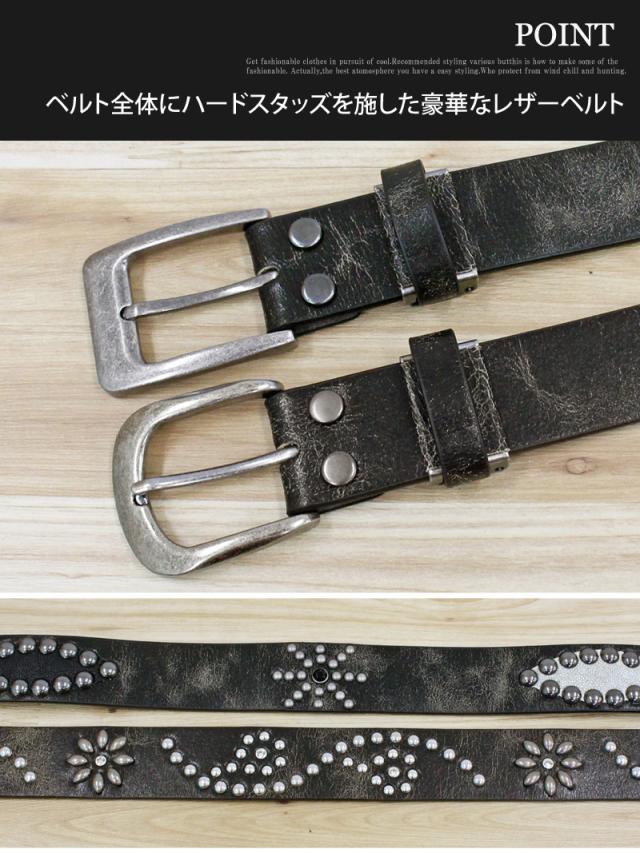 送料無料 ベルト メンズ アンティーク加工 メタルスタッズ レザーベルト 本革 牛革 男女兼用 メンズファッション メンズベルト メンズ通販
